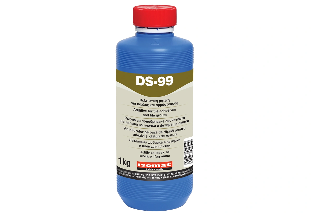 DS-99 este un aditiv pe baza de polimeri pentru adezivii de gresie și faianță si pentru chiturile de rosturi, care oferă o îmbunătățire semnificativă a proprietăților acestora: