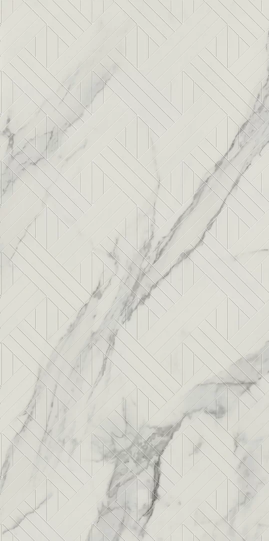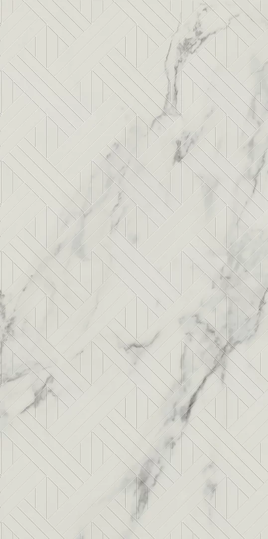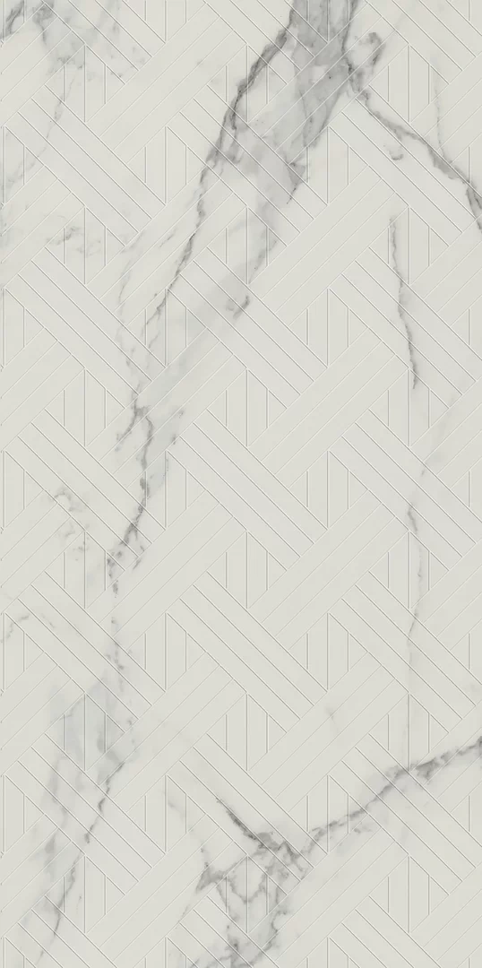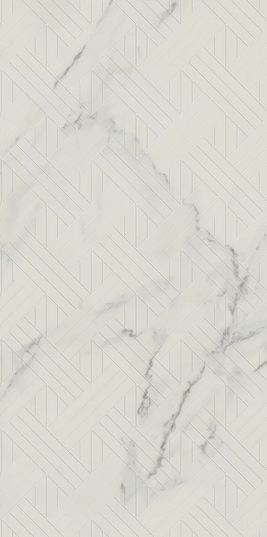 Decorul Carrastone White completează colecția cu un model alb spectaculos, cu efect irizant și textură reliefată ce poate fi simțită la atingere. Creează accente elegante pe pereți, aducând dinamism și un plus de lumină interioarelor, fără a încărca vizual spațiul.