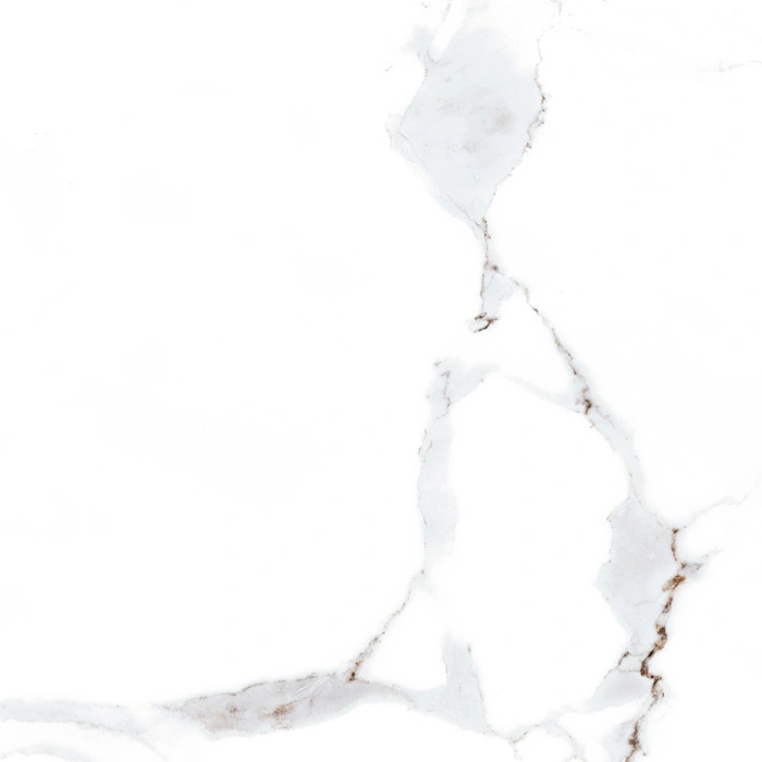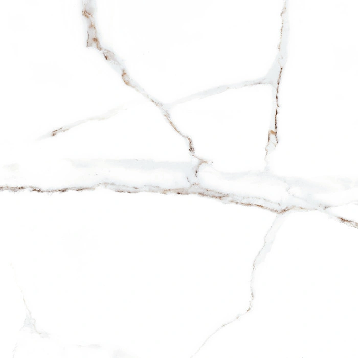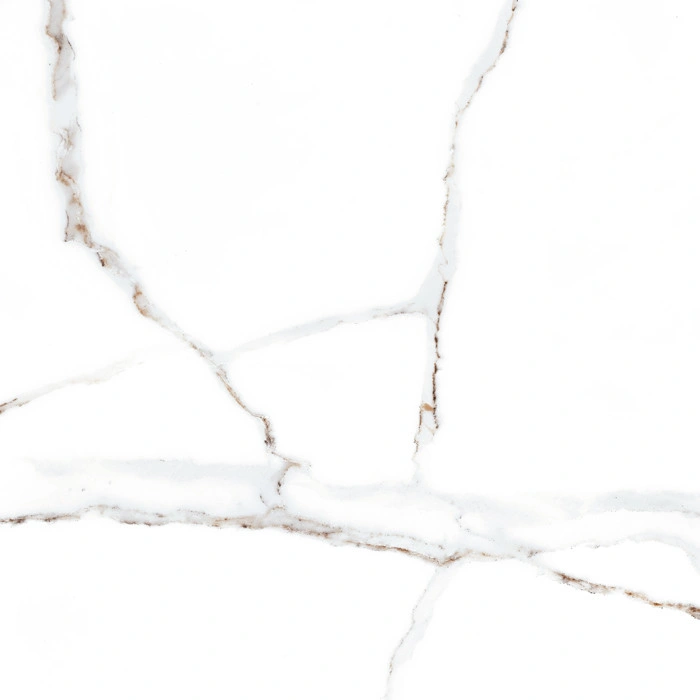 Gresie porțelanată cu design de marmură albă, cu fine vene aurii ce adaugă o notă luxoasă și elegantă, destinată pardoselilor. Finisajul lucios intensifică luminozitatea spațiului, fiind ideal pentru băi și bucătării moderne.