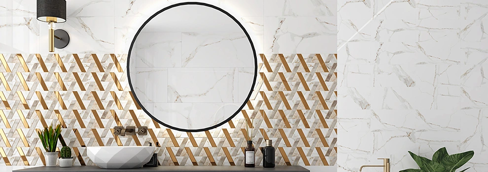 Colecția Delphi aduce luxul și rafinamentul marmurei direct în spațiul de locuit. Plăcile ceramice sunt realizate într-un finisaj elegant, ce îmbină puritatea marmurei albe cu accente aurii delicate, creând o atmosferă sofisticată. Decorurile geometrice strălucitoare, inspirate din motive moderne și întărite cu detalii aurii, adaugă un plus de exclusivitate. În completare, structura ondulată 3D conferă dinamism pereților, transformându-i în veritabile elemente de design. Seria Delphi se potrivește perfect atât în combinație cu decoruri de inspirație naturală, cum este lemnul, cât și cu accentul spectaculos al plăcii Stars Mix.